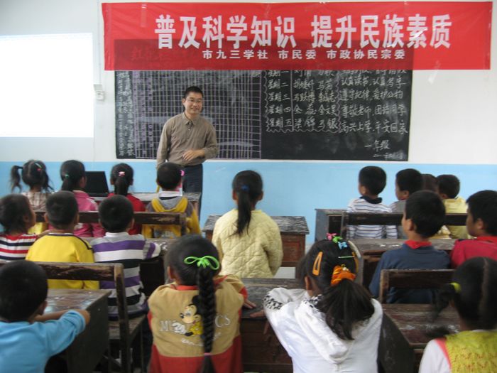 当天上午,一场“送科技”活动正在三益分场境内的马店回民小学校园里进行着。市九三学社主委、安庆师范学院教授胡万宝博士为全体回民师生上了一堂别开生面的科普讲座,师生们每人还获得了一份《民族团结宣传教育材料》。