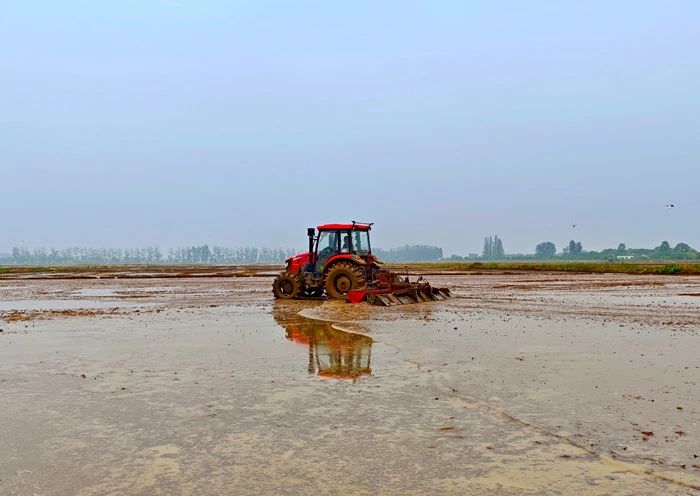 “秧好一半禾,苗好七分收。”这句农谚在大圹圩农场被赋予了科技新意。为保障水稻种植质量,农场今年夏种首次引入卫星水田平地机,为农田进行“精修细整”,扮演起“农田整容师”的角色。